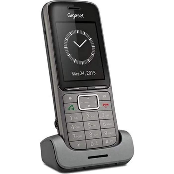 und hoher Maximallautstärke · Volle Kompatibilität mit der Gigaset N510 IP Basis und dem N720 DECT IP Multizellen-System · Modernes Design mit komfortabler Grösse und Proportionen · Lokales Telefonbuch mit Suchfunktion und bis zu 500 vCards · Zugang zum Firmentelefonbuch über PBX (XML, LDAP) · Unterstützung von Netzdiensten über Menü · Vibrationsalarm · Option zum Deaktivieren des Klingelns in der Ladeschale zB. bei einem Parallelruf · Headsetbetrieb über Bluetooth® oder 2,5mm-Buchse · Komfortabler Datenaustausch über Bluetooth® oder Micro-USB · Tastensperre mit PIN-Schutz, zur Vermeidung missbräuchlicher Nutzung · Aufladen mit Micro-USB Adapter · Kratz- und Desinfektionsmittelbeständigkeit · Breiter, bedeutend dünner und äusserst elegant Lieferumfang